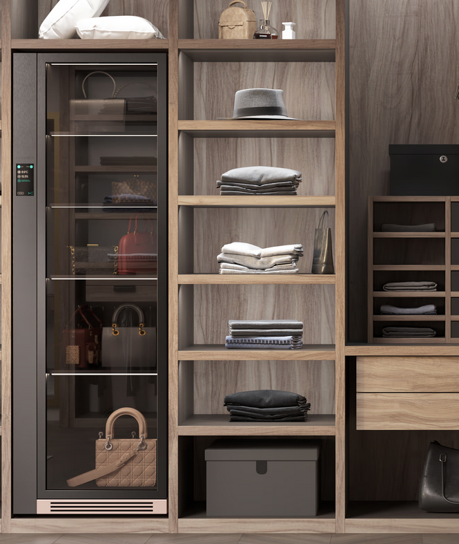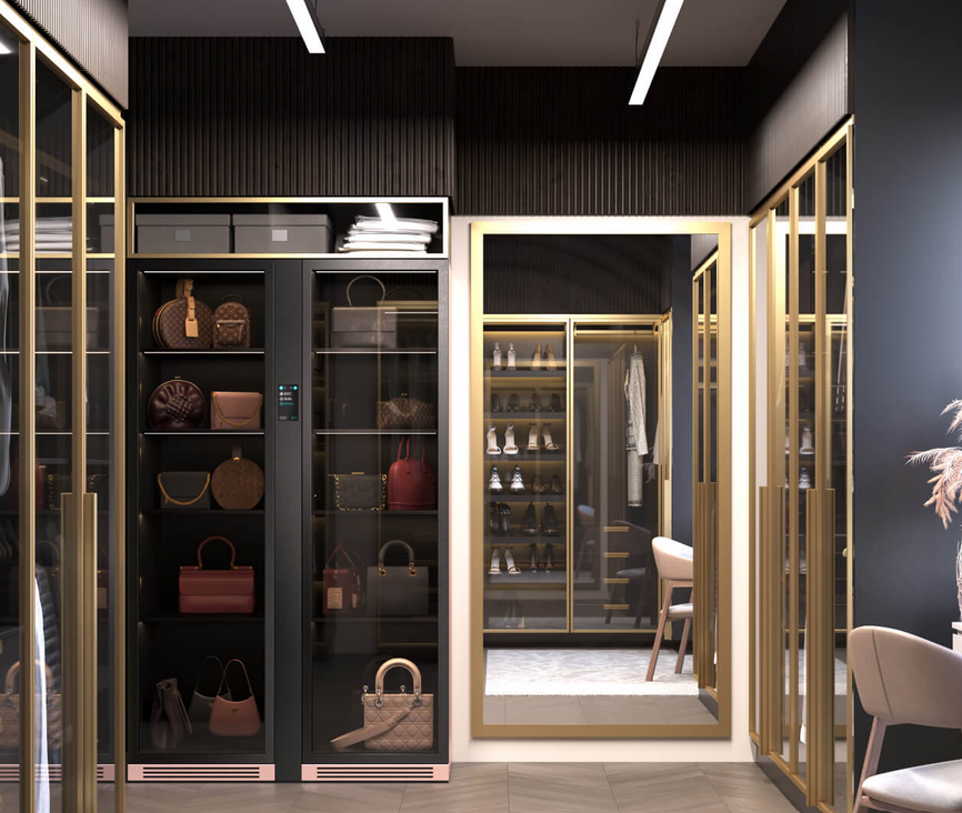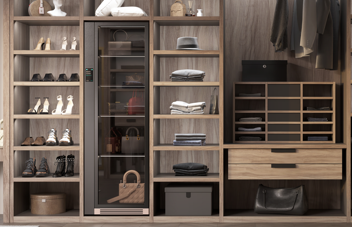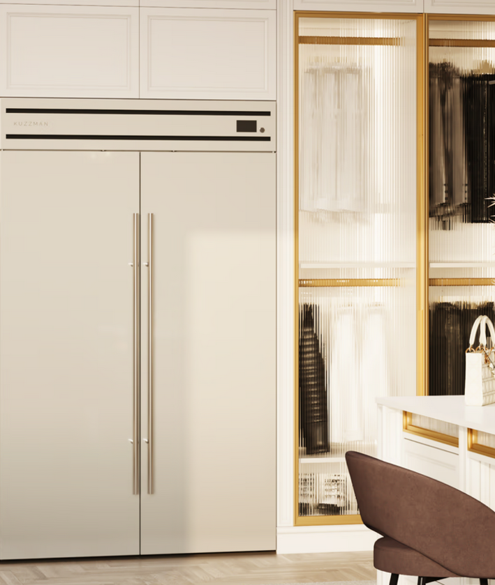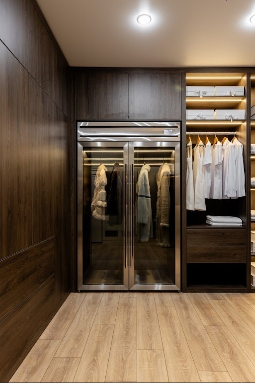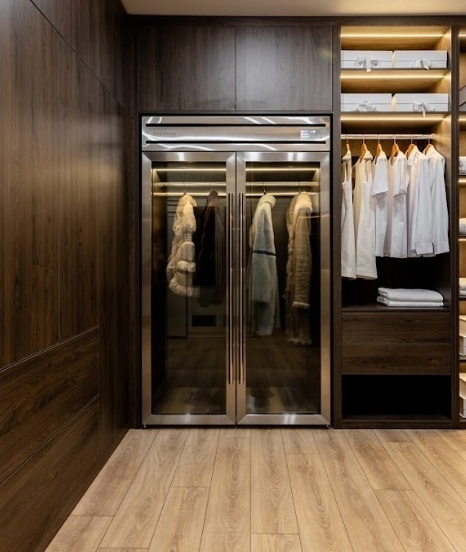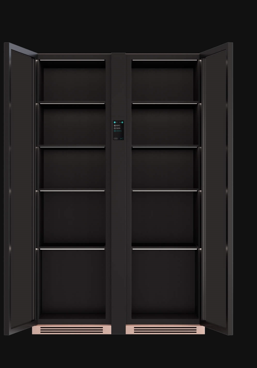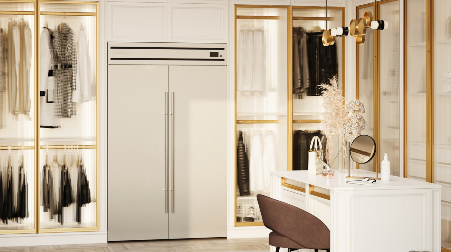 Каждый из холодильников этой коллекции создан, как отдельный арт-объект. Его также можно интегрировать в гардеробную комнату. Стёкла придают яркий акцент, а лёгкая тонировка на них и защита от ультрафиолета обеспечат надежное хранение одежды и аксессуаров из самых капризных материалов.